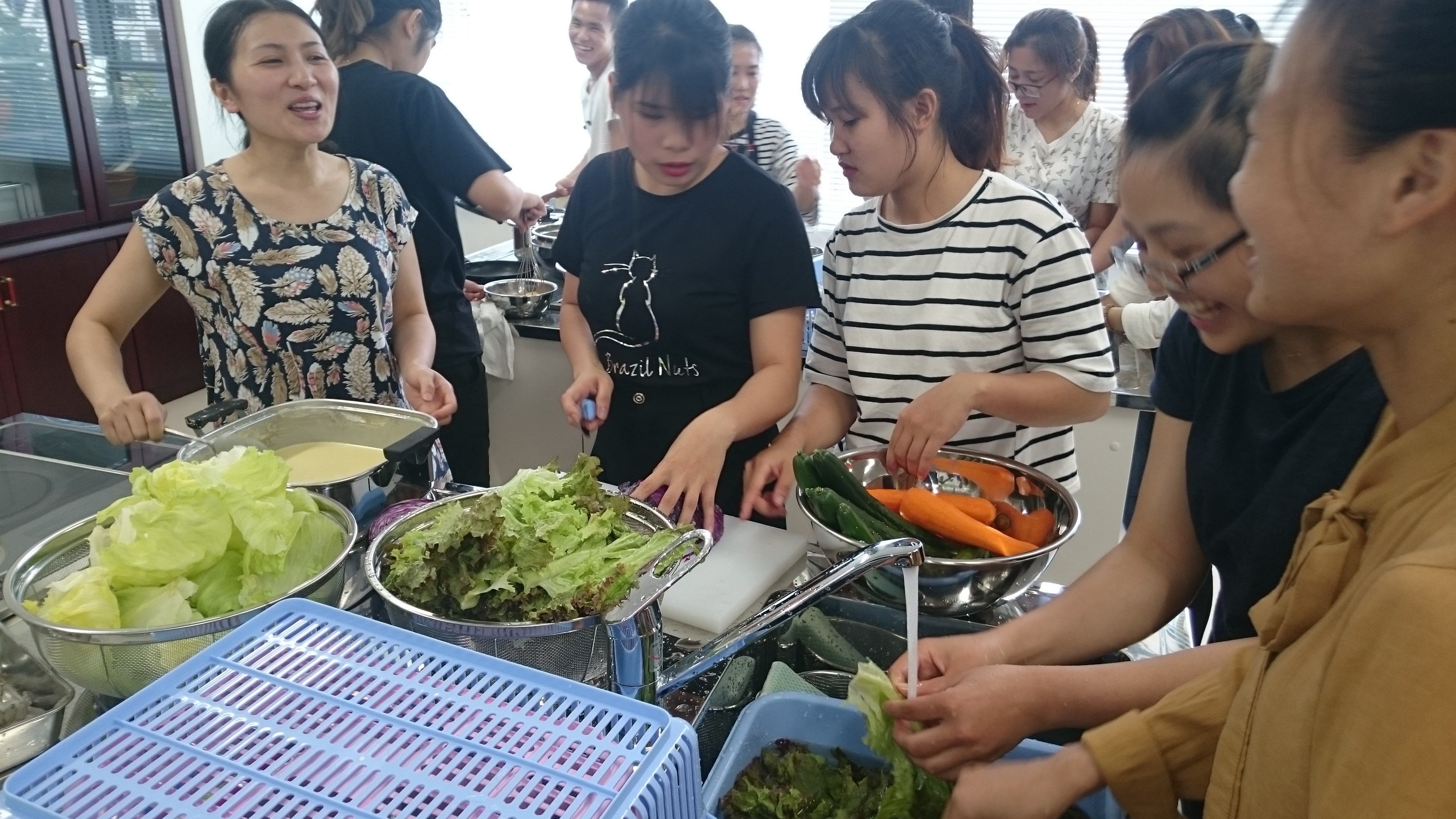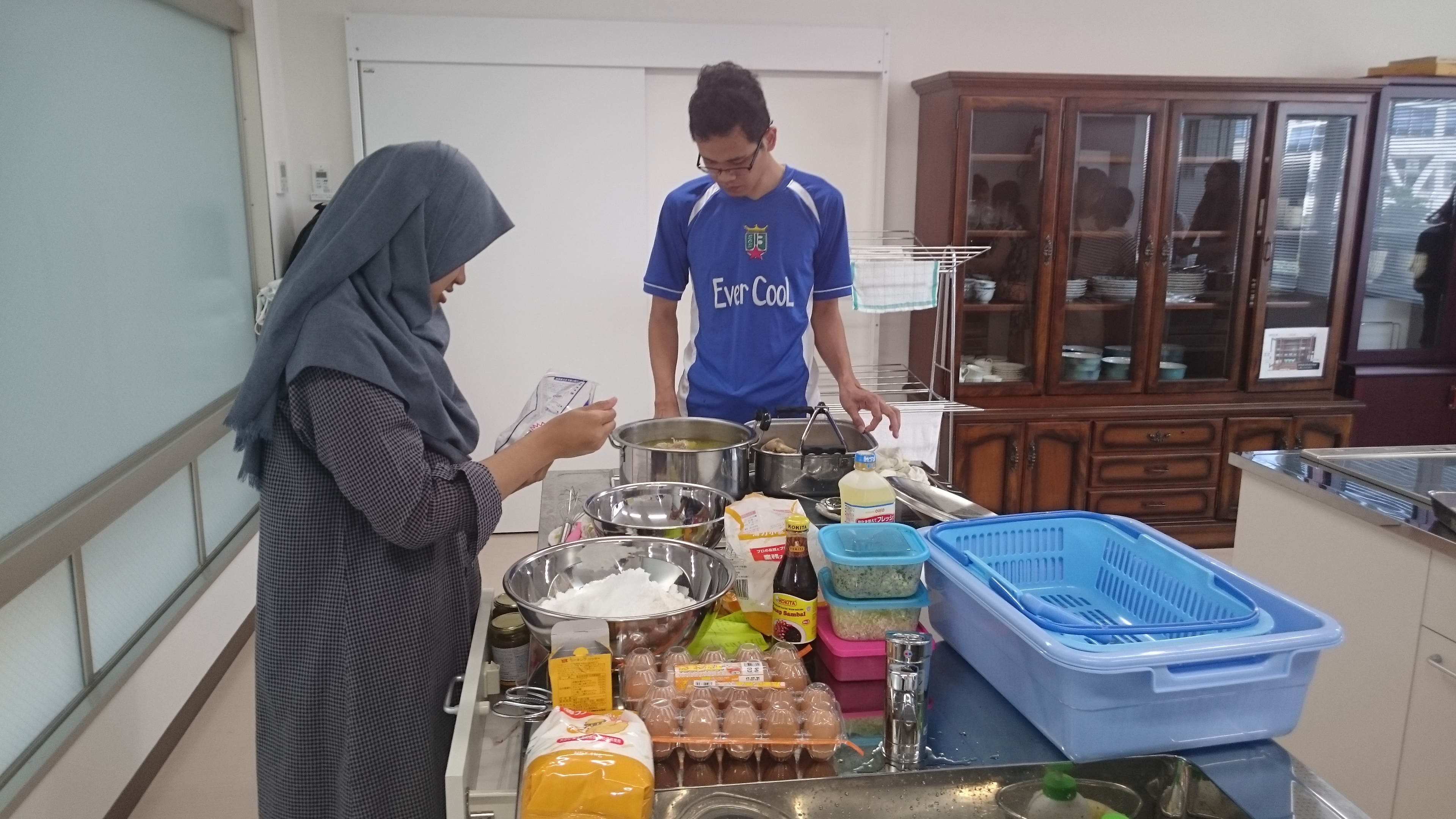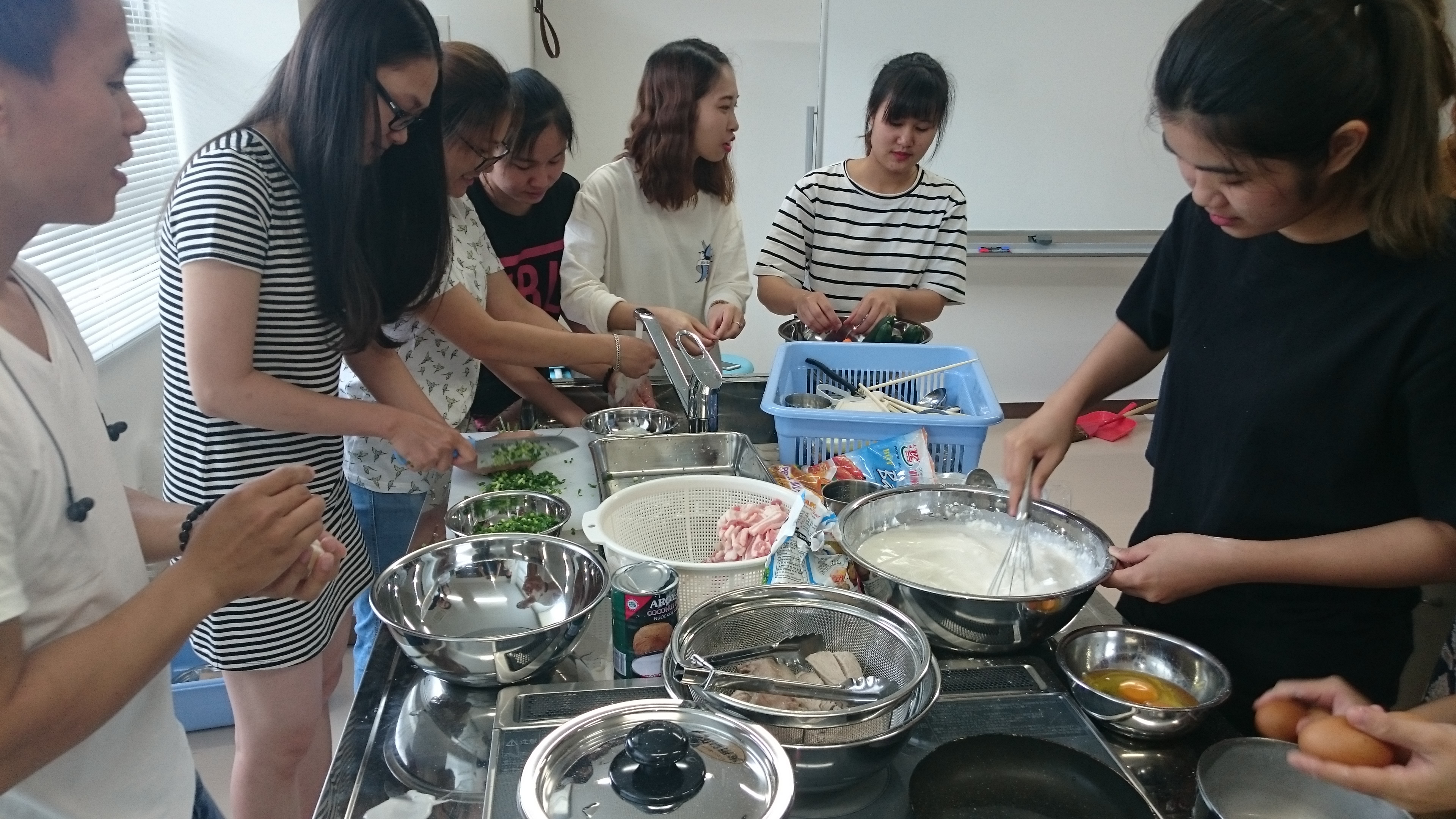 上の写真はアリス学園の留学生の生徒さんたちが郷土料理(インドネシア、ベトナム)を作っている様子です。皆さん、とても明るくて、気分よく料理を作っていました。