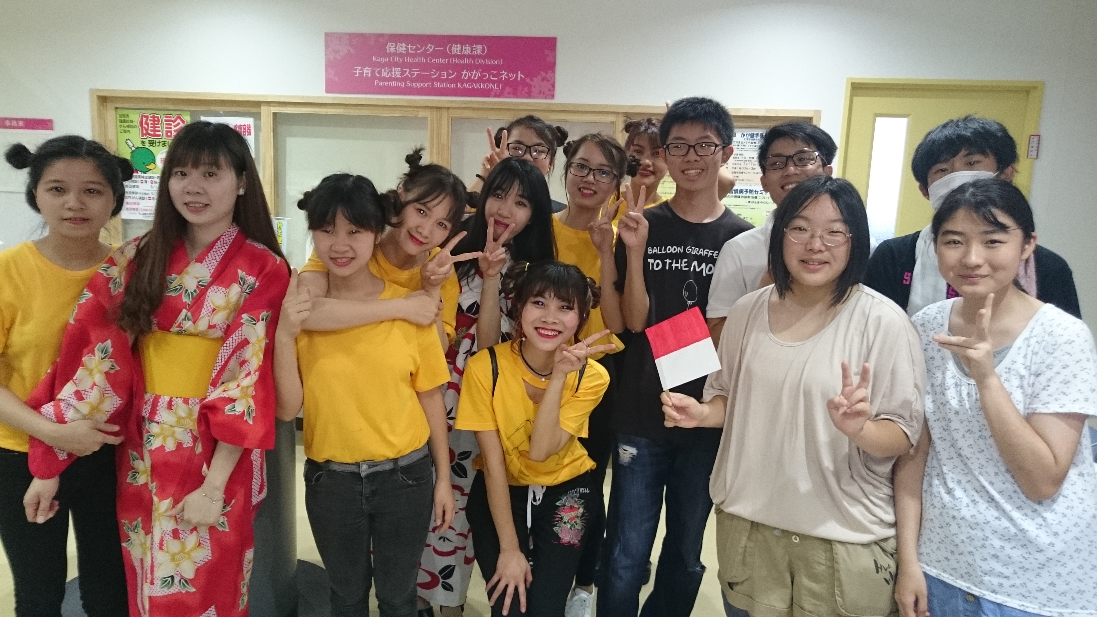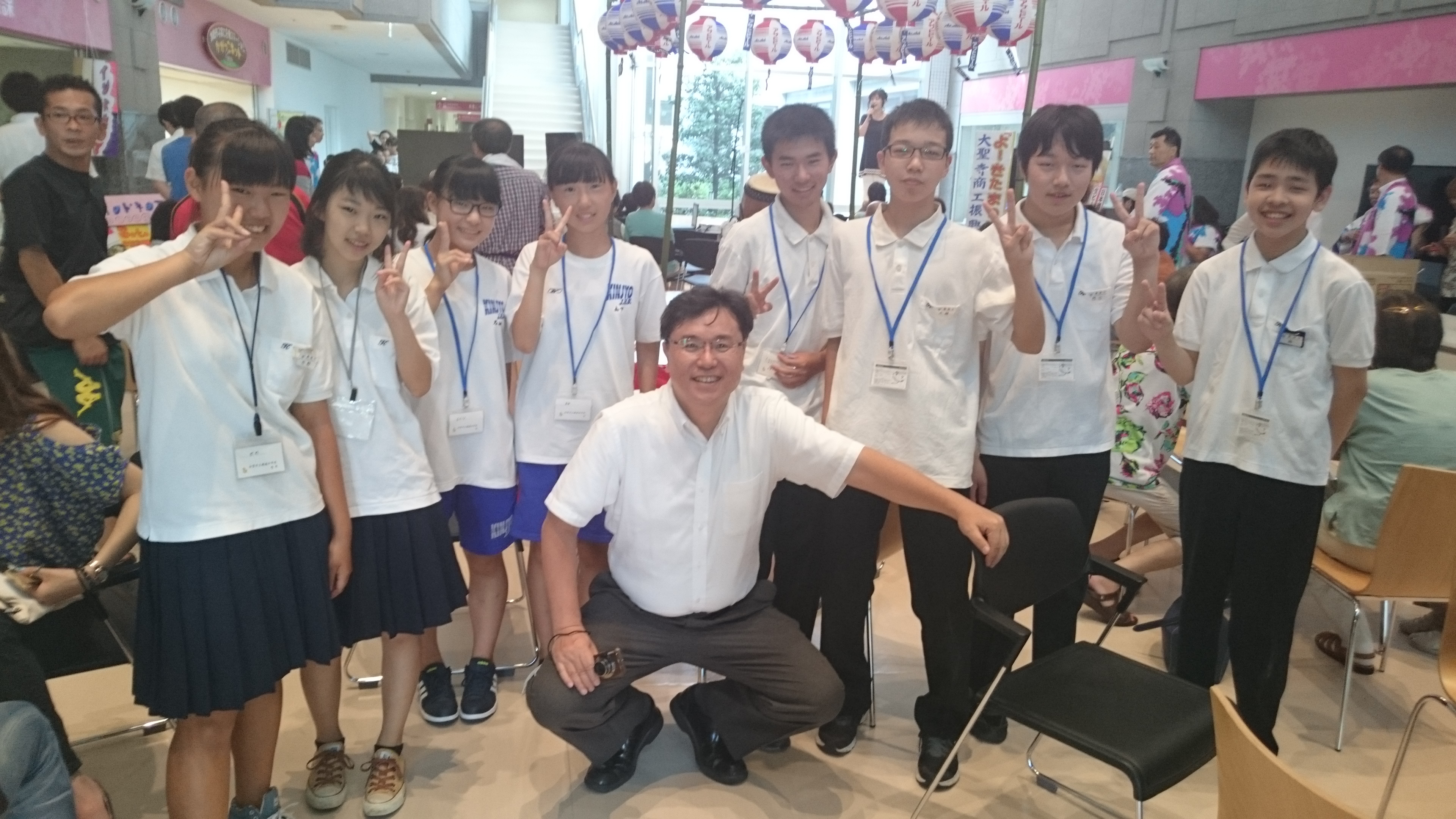 おまつりには錦城中学校の生徒さん(上)8名(中央は奥野校長先生)と大聖寺実業高校の生徒さん(下)4名もボランティアとしてお手伝いしていただきました。中学校の生徒さん達にはお菓子のふるまいを、高校の生徒たん達にはアリス学園の料理の販売を手伝っていただきました。大変ありがとうございました。来年もお手伝いよろしくお願いします。
