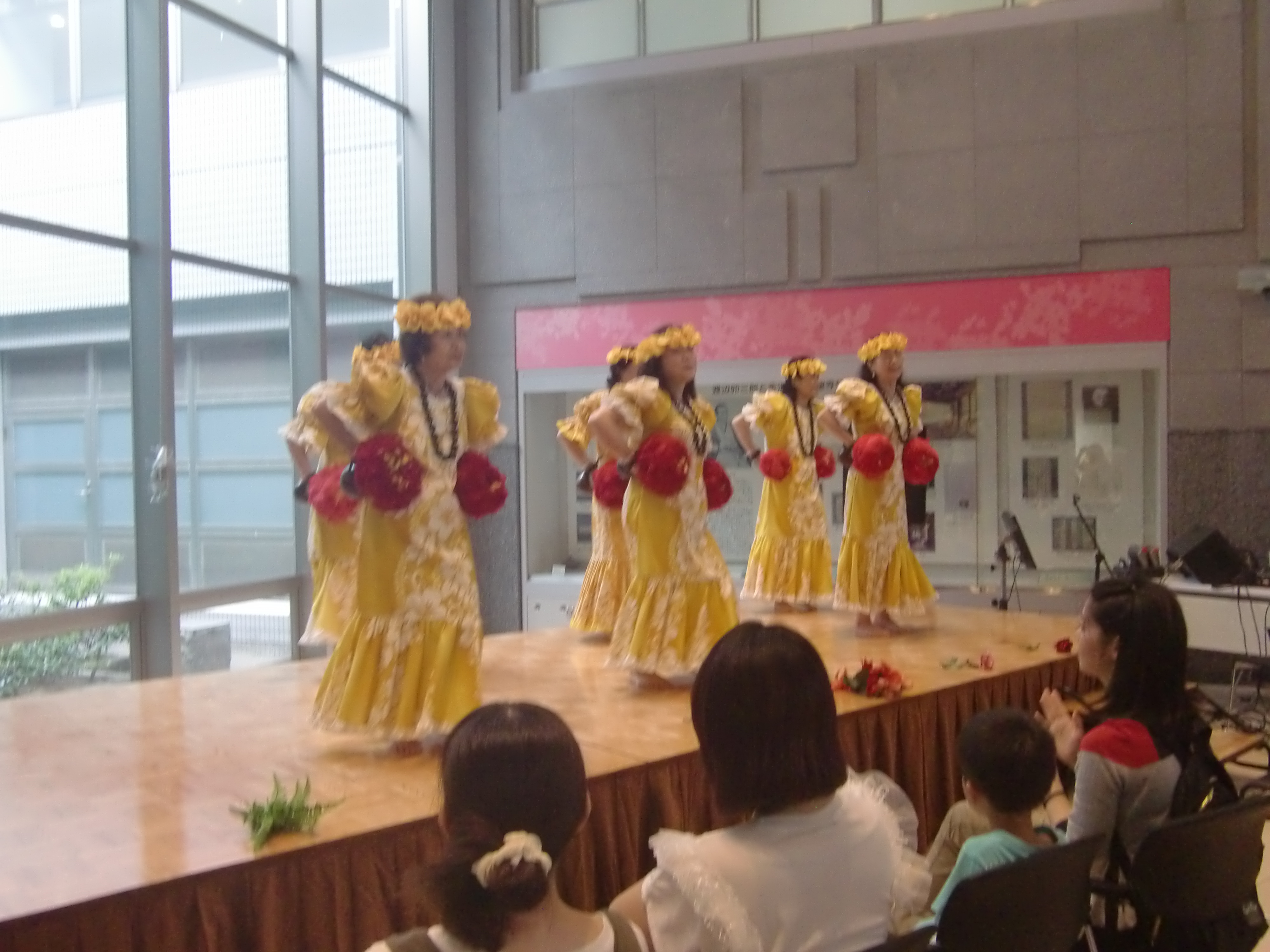 ステージ上では、☆ホク・フラ研究会によるハワイアンフラダンスが行われました。会場がゆったりとした気分になりました。